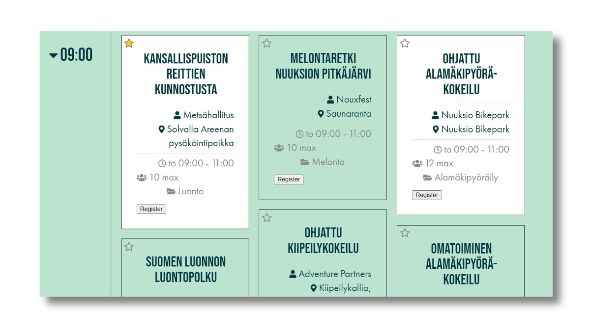 Nouxfestin ohjelma on niin laaja, että sen hahmottaminen vaatii tarkempaa tutustumista. Tässä artikkelissa esittelemme, miten ohjelmatyökalua käytetään ja miten ohjelmapaikkoja varataan. Ohjelma löytyy sivulta Ohjelma. Lataa myös koko tapahtuman ohjelmakartta pdf-tiedostona.Siitä näet yhdellä kertaa päiväkohtaisen kalenterint. Ohjelman selaaminen Ohjelmatyökalussa on useita hyödyllisiä